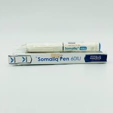 “Somatropin” (brand name “Somaliq 60iu”), which is a form of human growth hormone used for various medical conditions. The “60 IU” likely indicates the dosage in International Units.