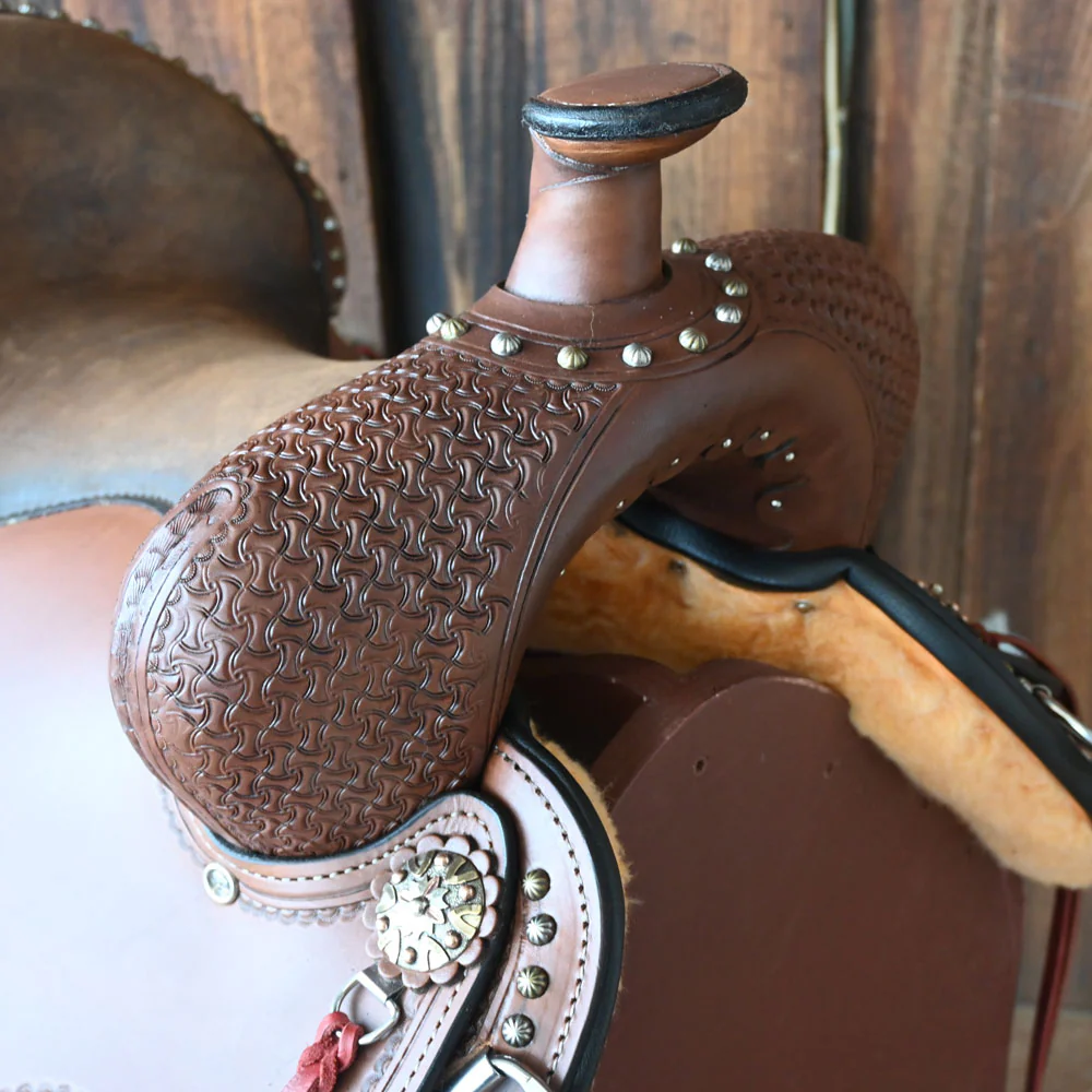 This Used 16″ Circle Y Reno Flex2 Trail saddle comes in a heavy oil 1/2 geometric tooling with a padded seat. For more information call a saddle salesman today.